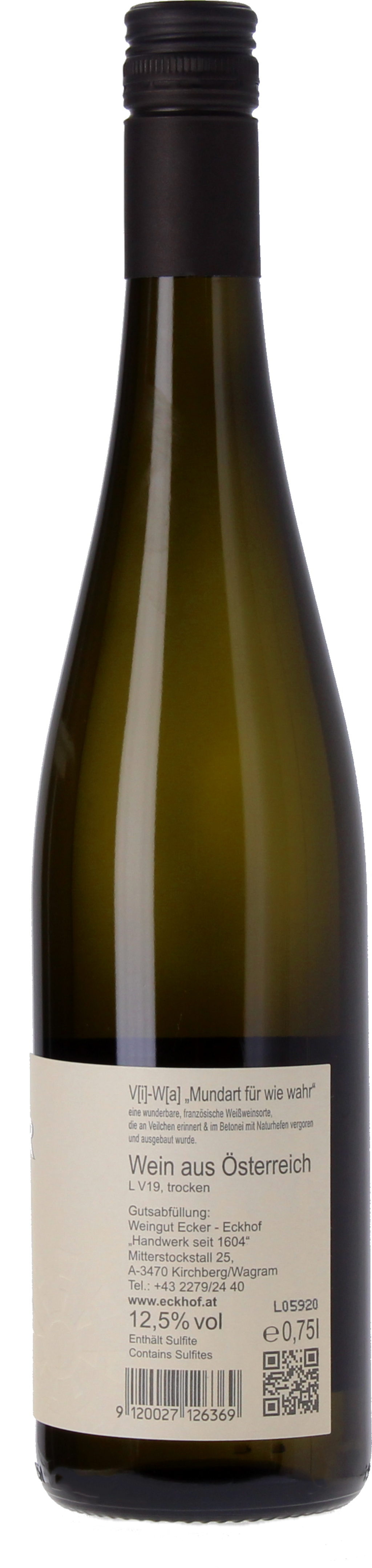 V[i] W[a] è un'espressione dialettale che significa "come vero", poiché il vitigno francese Viognier non è autorizzato come varietà di qualità in Austria e quindi non può essere indicato ufficialmente in etichetta.