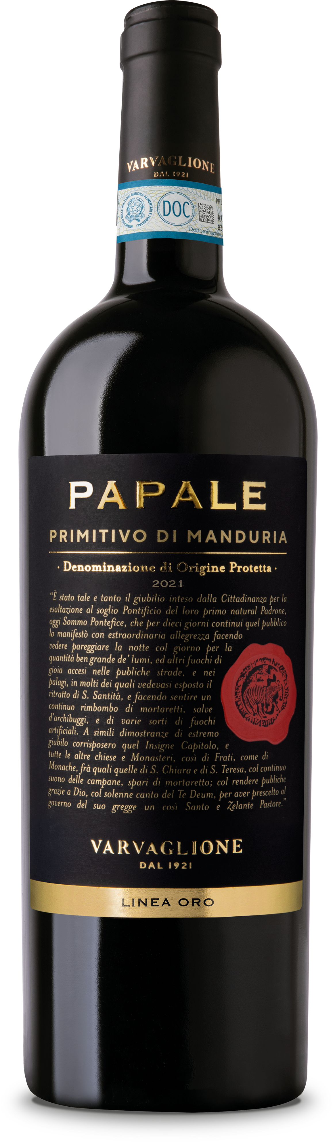 Varvaglione Primitivo di Manduria DOP Papale ORO 2021 DOP, 0,75 L